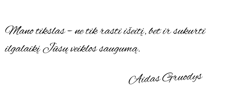 Su klientais ir partneriais laikomės etikos ir konfidencialumo. Dauguma darbo lieka užkulisiuose – be viešumo ir reklamos.